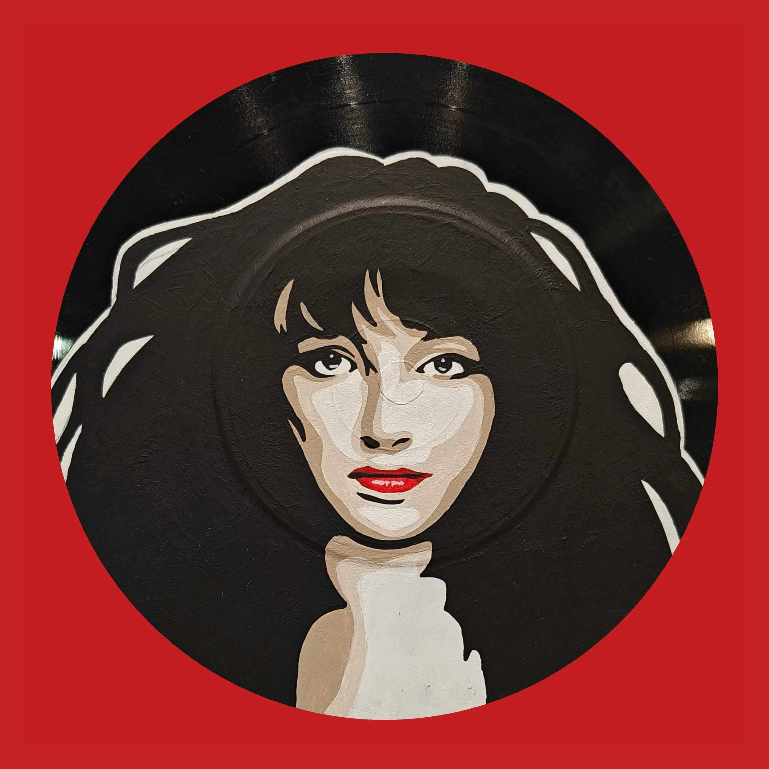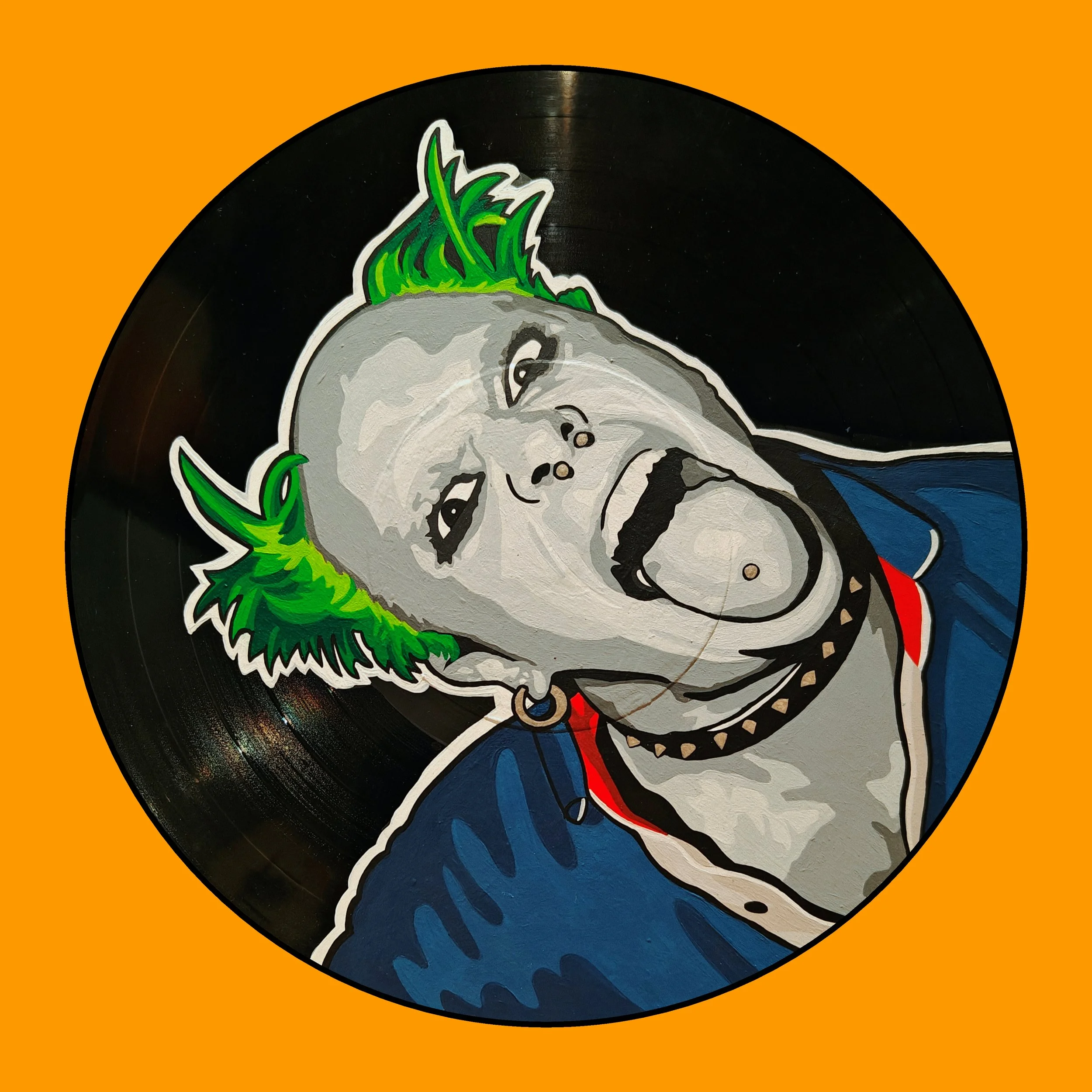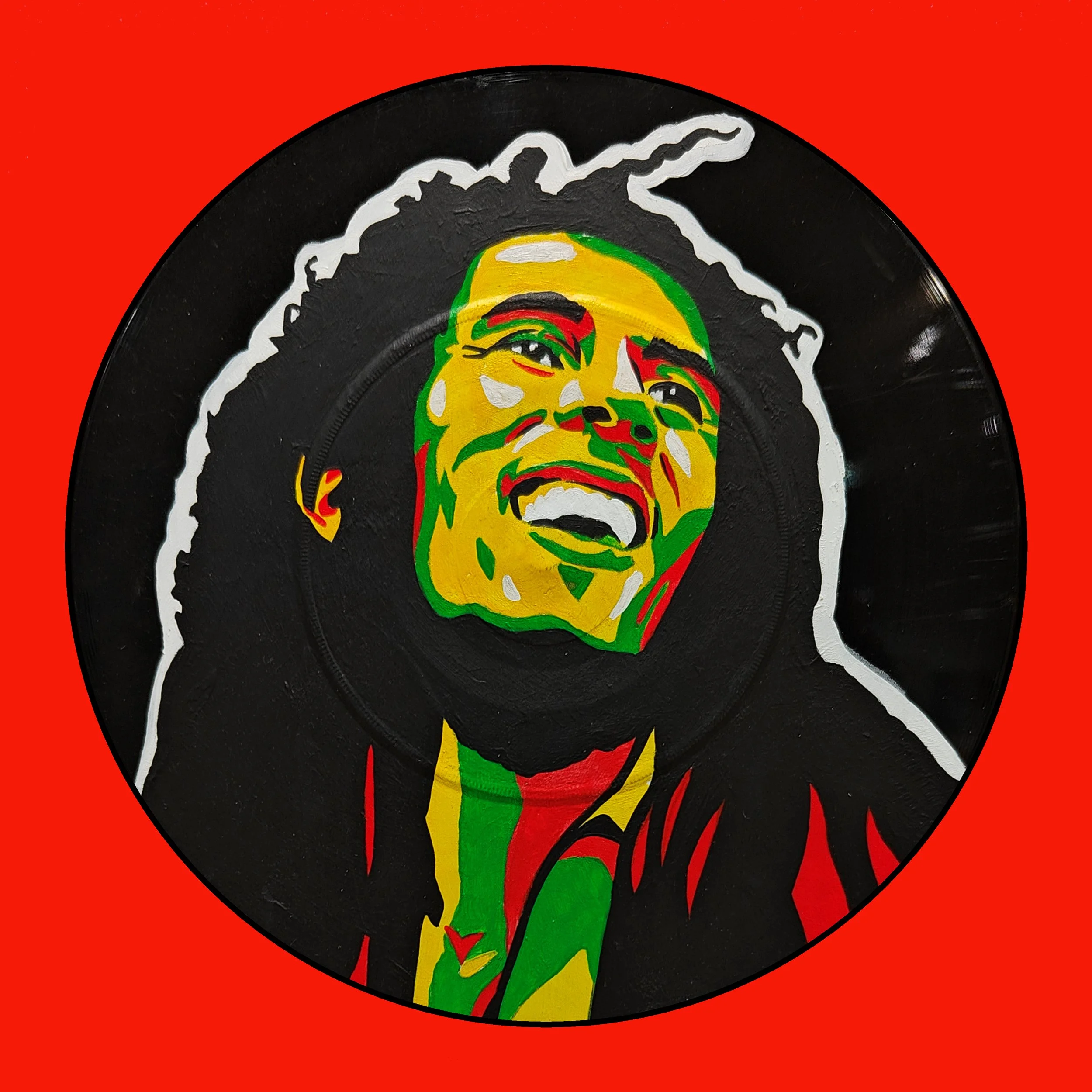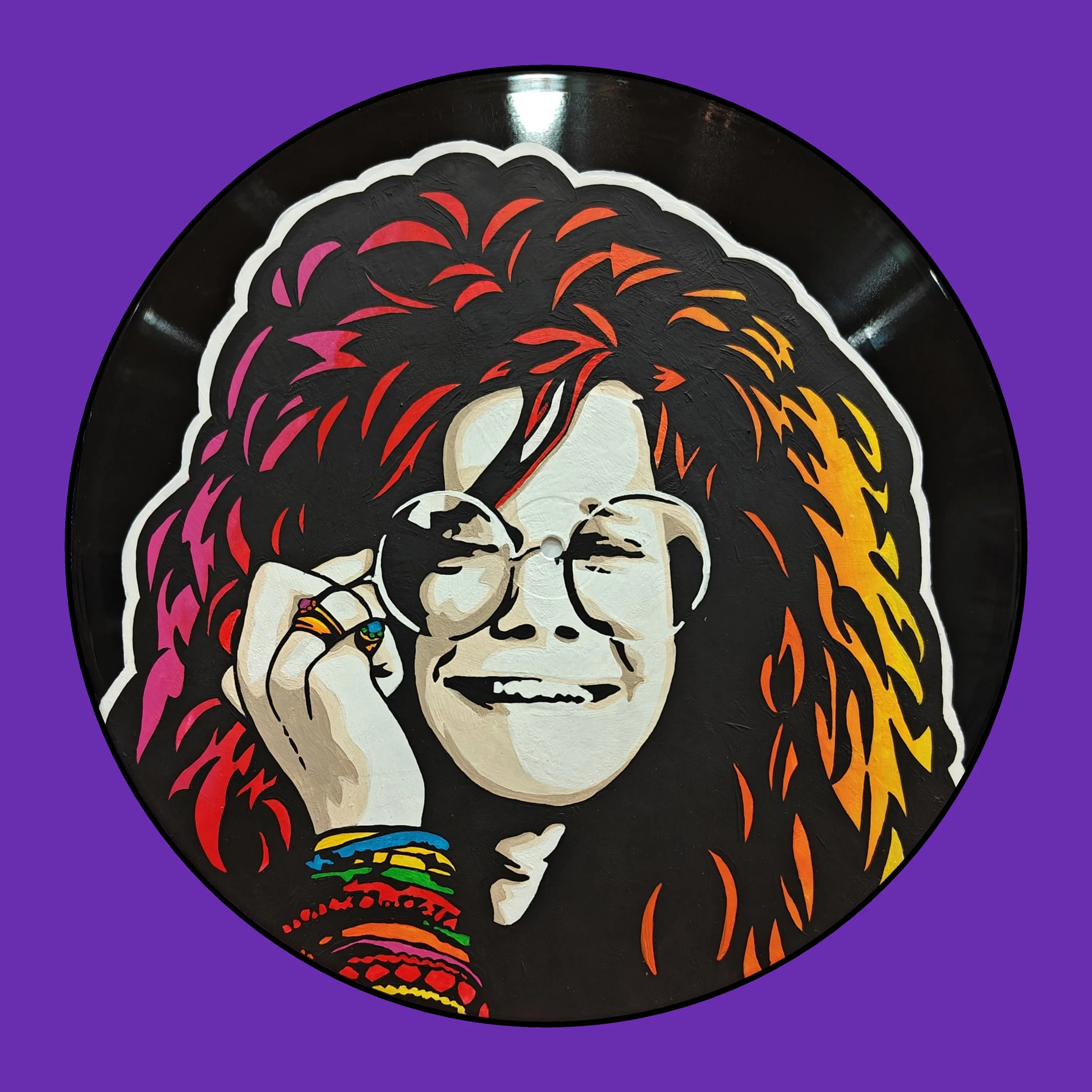 Hand Painted vinyl record. All records used are damaged and can no longer be played.