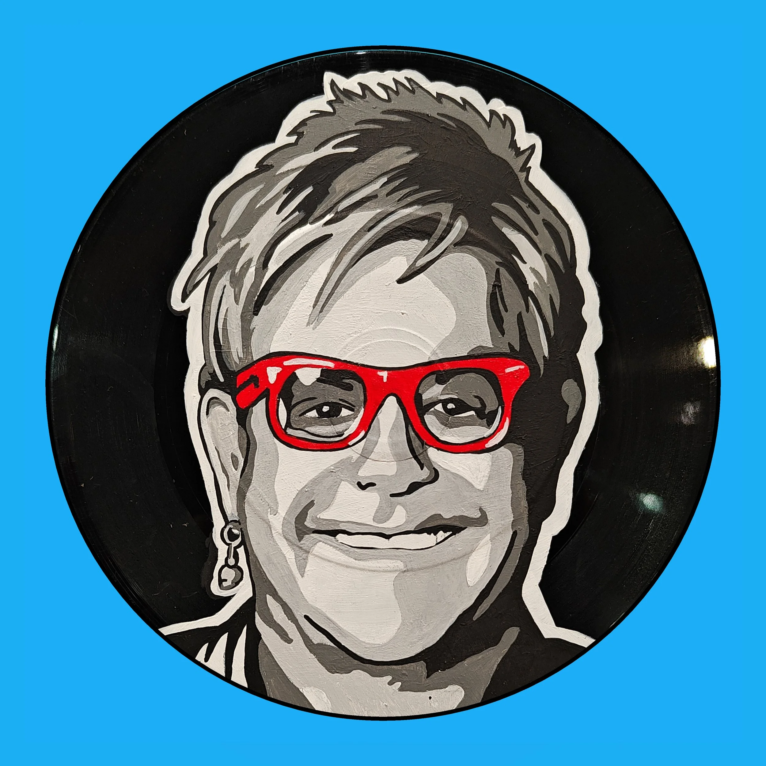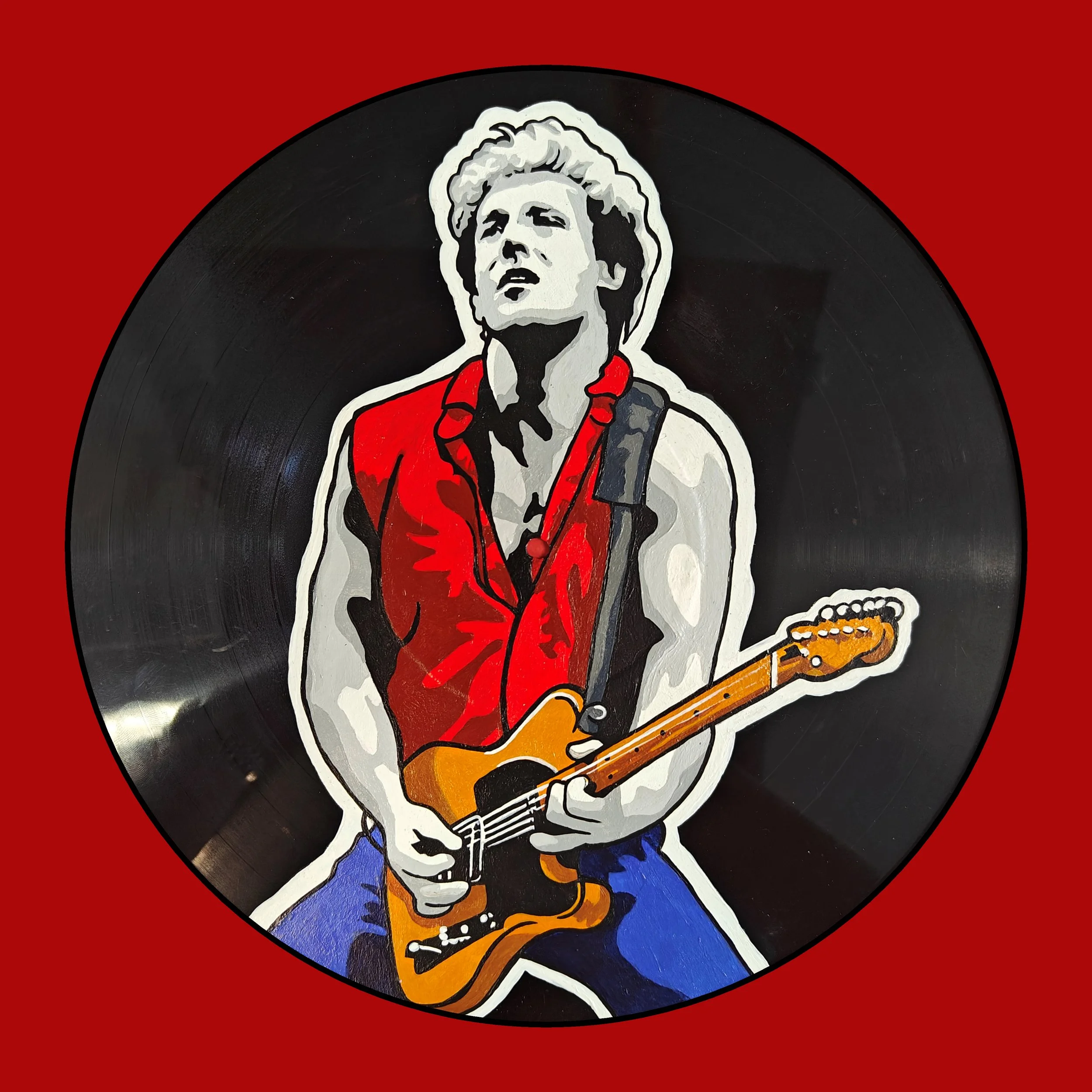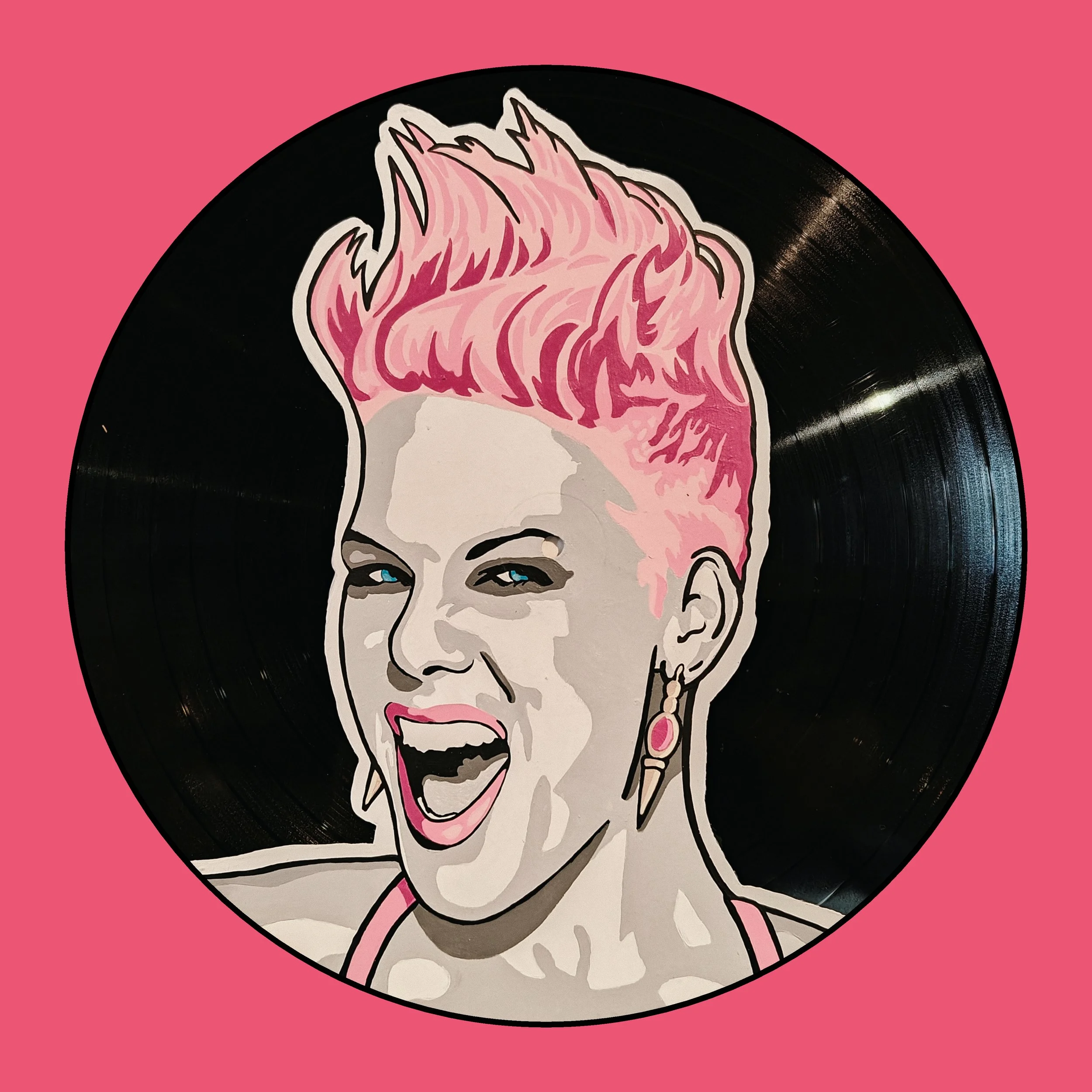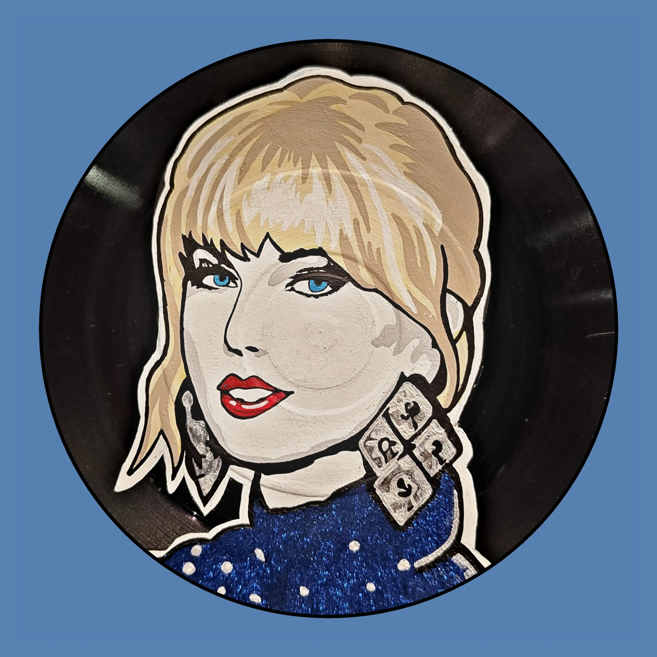 Hand Painted vinyl record. All records used are damaged and can no longer be played.