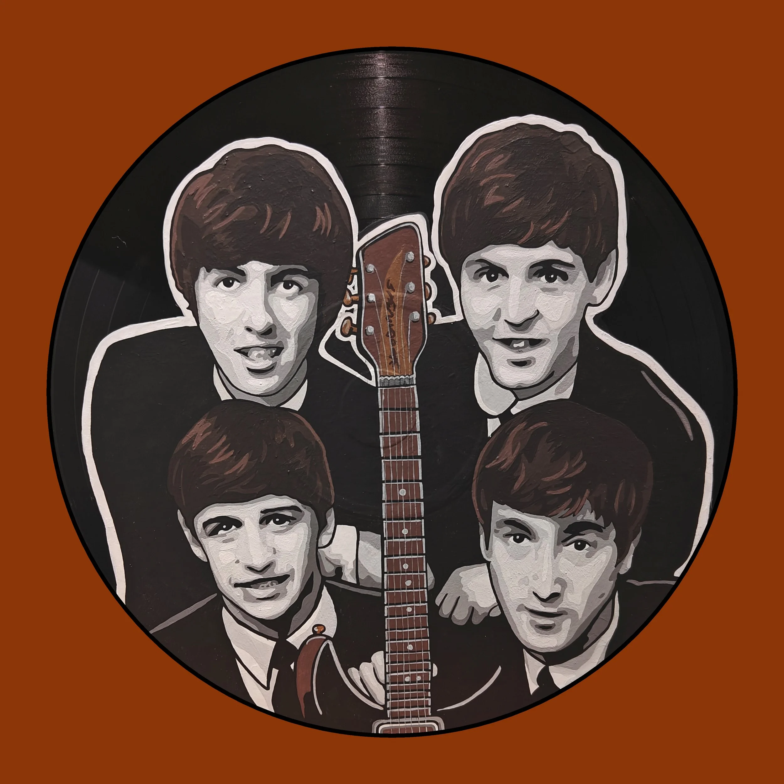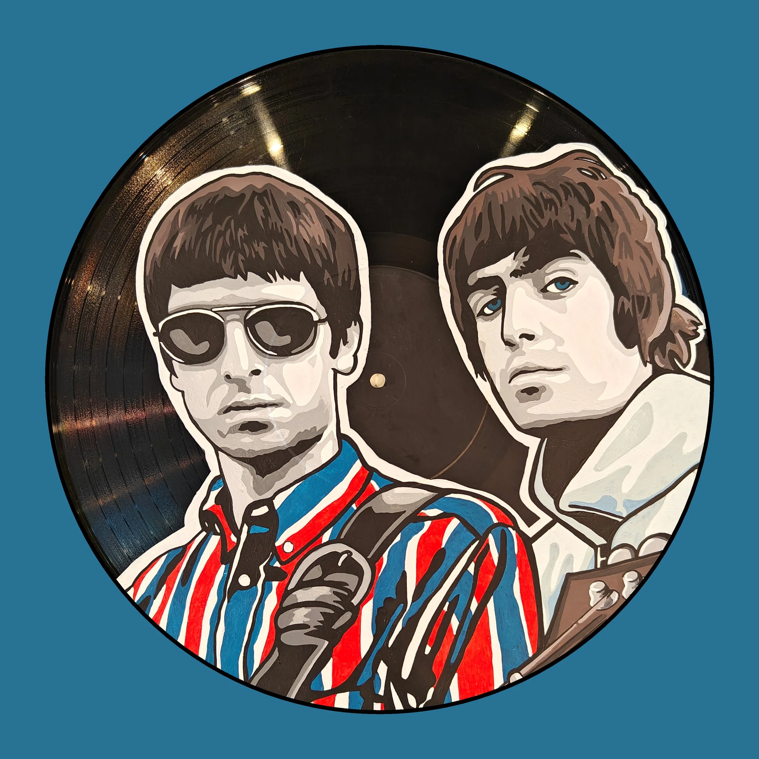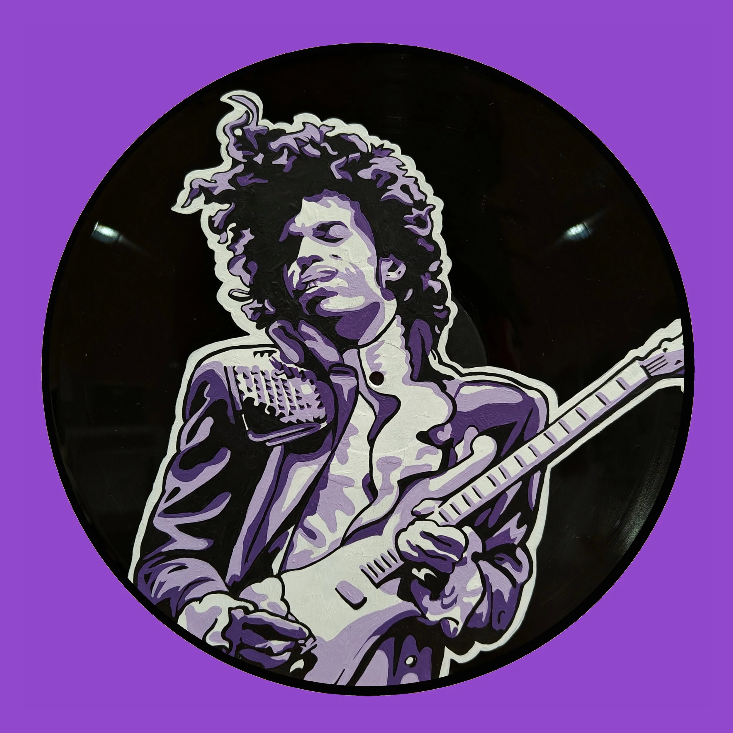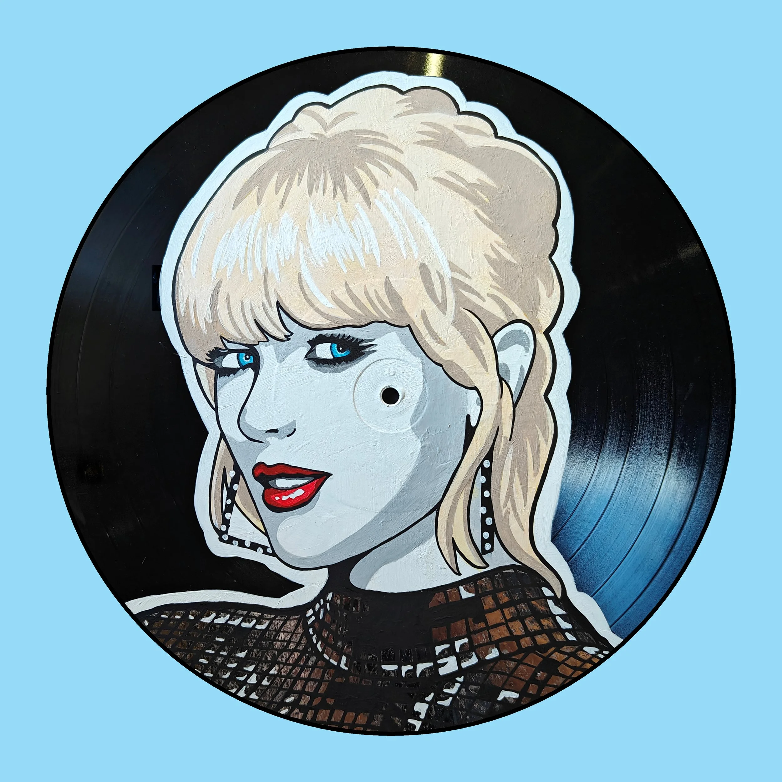 Hand Painted vinyl record. All records used are damaged and can no longer be played.